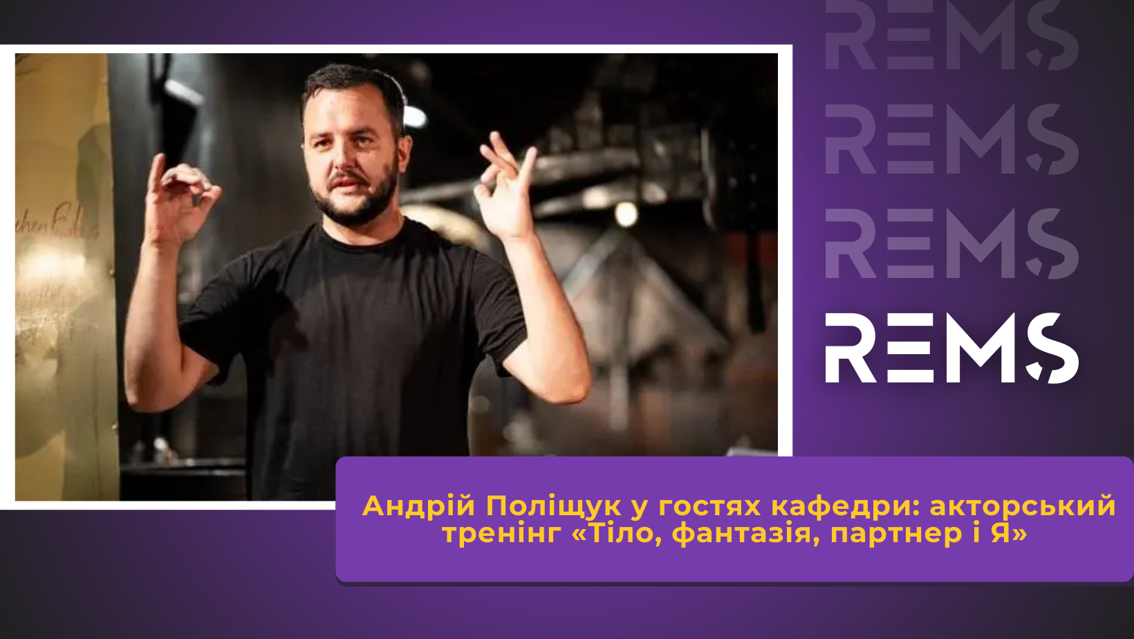 Нещодавно в межах фестивалю для абітурієнтів кафедра режисури естради і шоу провела акторський тренінг від провідного актора Київського академічного театру «Золоті ворота» Андрія Поліщука — «Тіло, фантазія, партнер і Я». Заняття стало спільним простором для абітурієнтів і студентів кафедри: можливістю не «послухати про акторство», а працювати в акторській практиці — через дію, увагу й взаємодію.